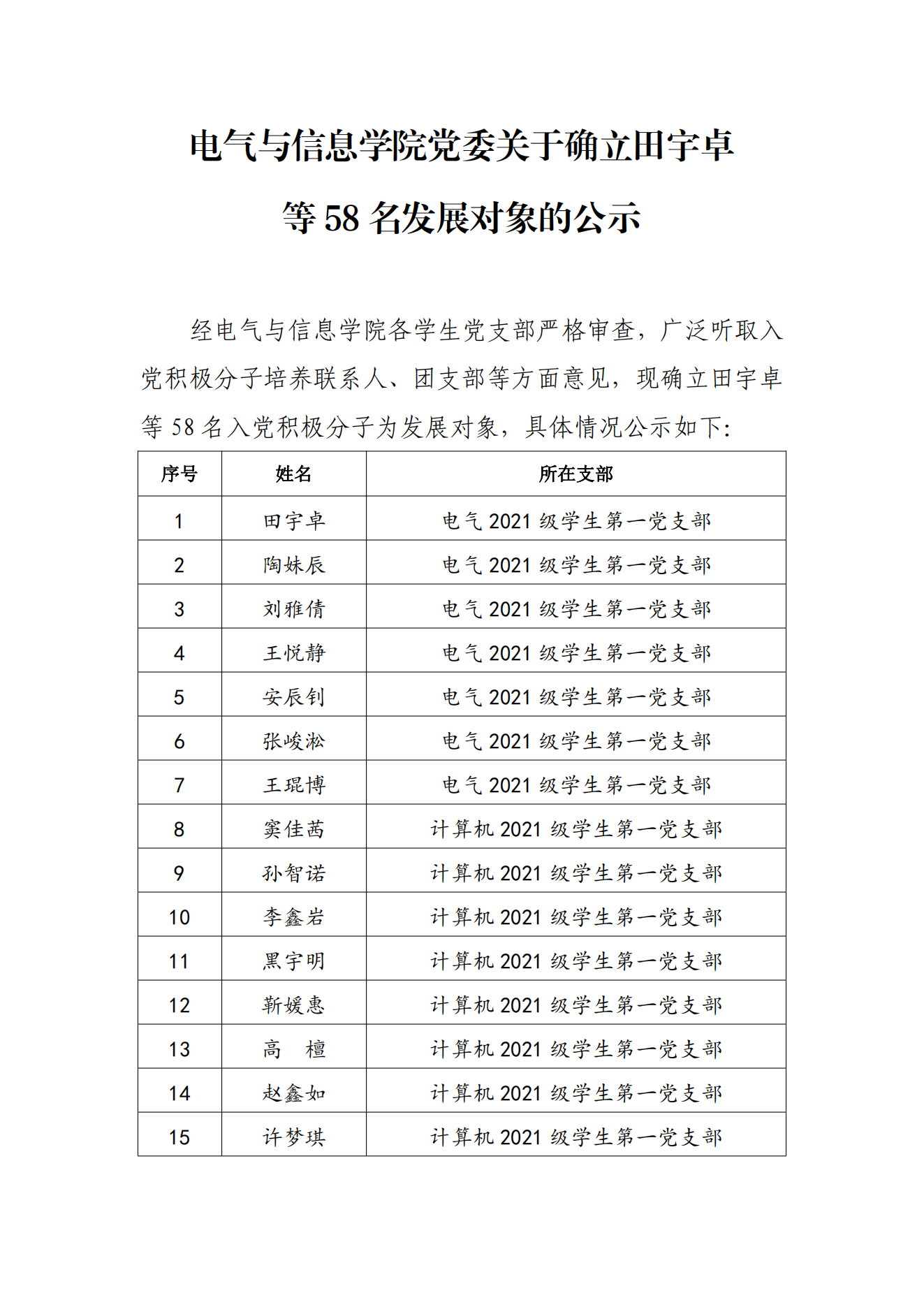 威廉希尔中文官网党委关于确立田宇卓等58名发展对象的公示
