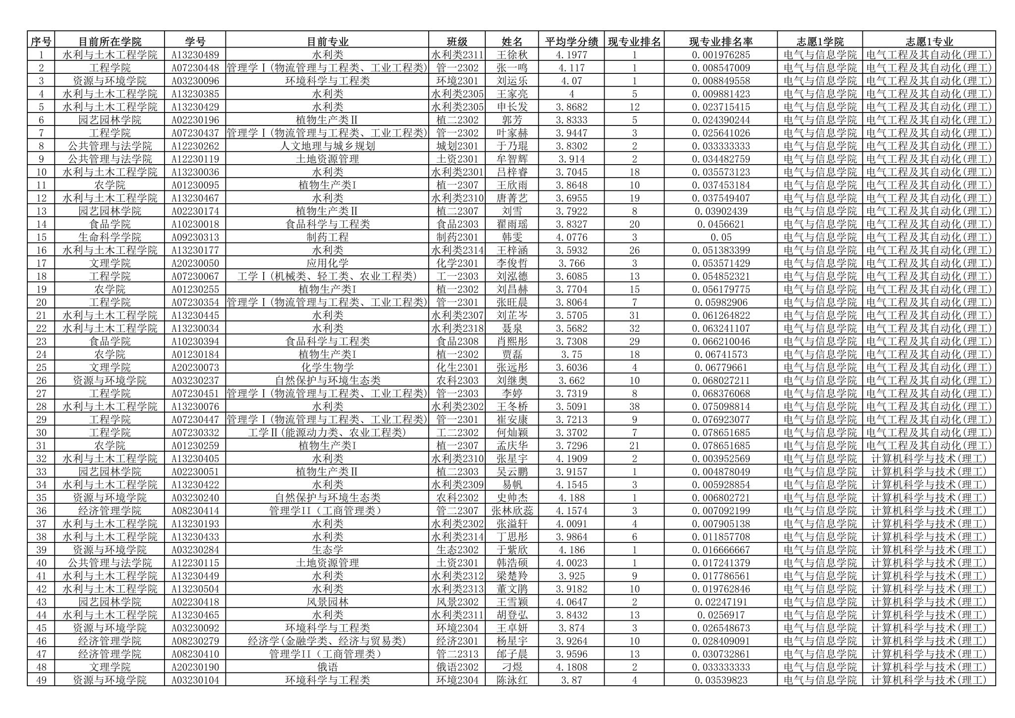 根据《williamhill官网学生转专业、转学管理实施细则(修订)》和《威廉希尔中文官网优秀本科生转专业接收方案》的规定,威廉希尔中文官网2023级优秀本科生校内转专业第一志愿录取结果如下: