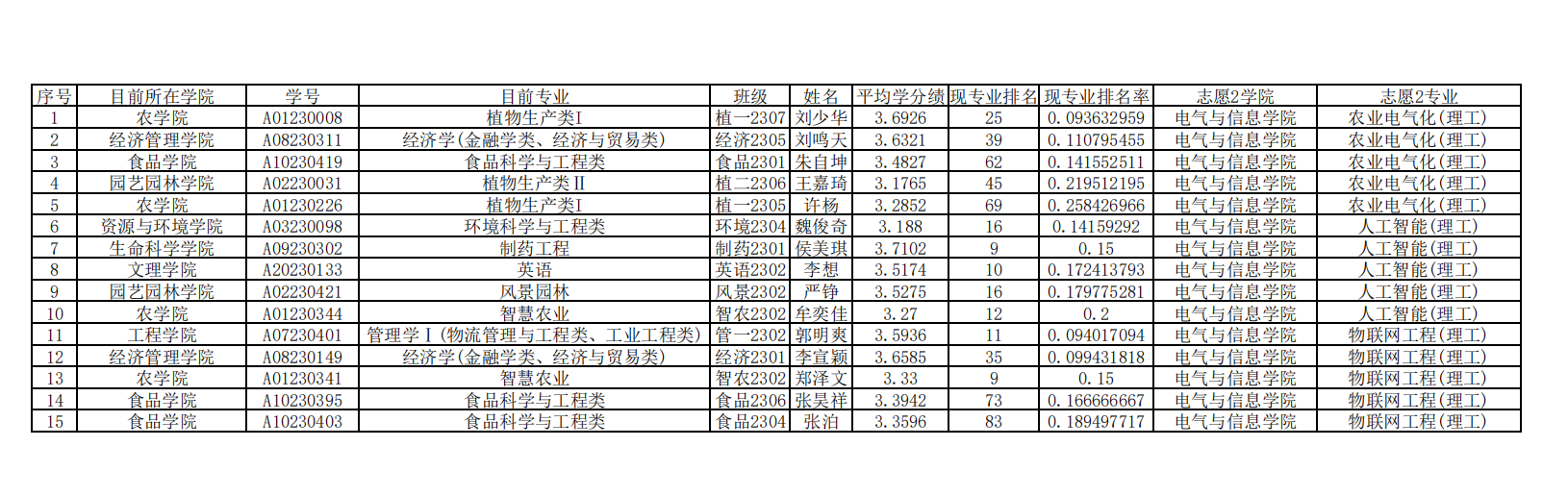 情况说明:现文理学院化学生物学学生张凯淇(A20230070;化生2301)自愿放弃一志愿物联网工程(理工)录取结果,学校教务处审核并批准。