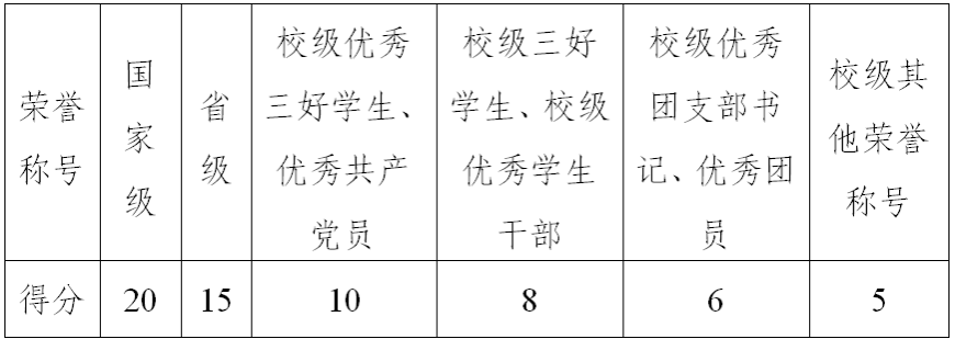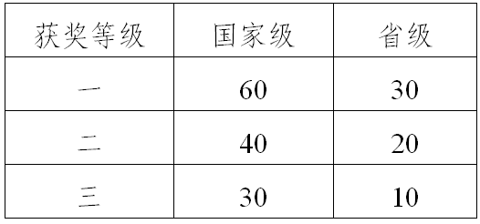 注:(1)评奖若以金银铜奖记,按一、二、三等奖加分;若有特等奖,可在一等奖分值基础上加5分;破记录者可在获奖名次分值的基础上加5分。