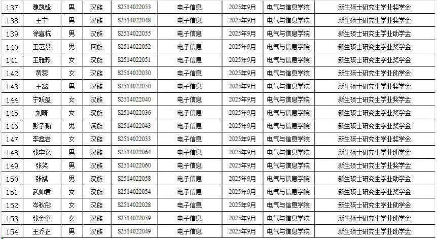根据《关于开展2025年研究生学业奖助学金评审工作的通知》相关要求,按照《威廉希尔中文官网2025年研究生学业奖助学金评审细则》,经个人申请、审核评分,现将研究生学业奖助学金名单进行公示,对以下人选如有异议,可在公示期内反映,反映情况和问题必须实事求是,应签署或告知真实姓名、所在单位和联系方式;对线索不清的匿名信和匿名电话,公示期间不予受理。